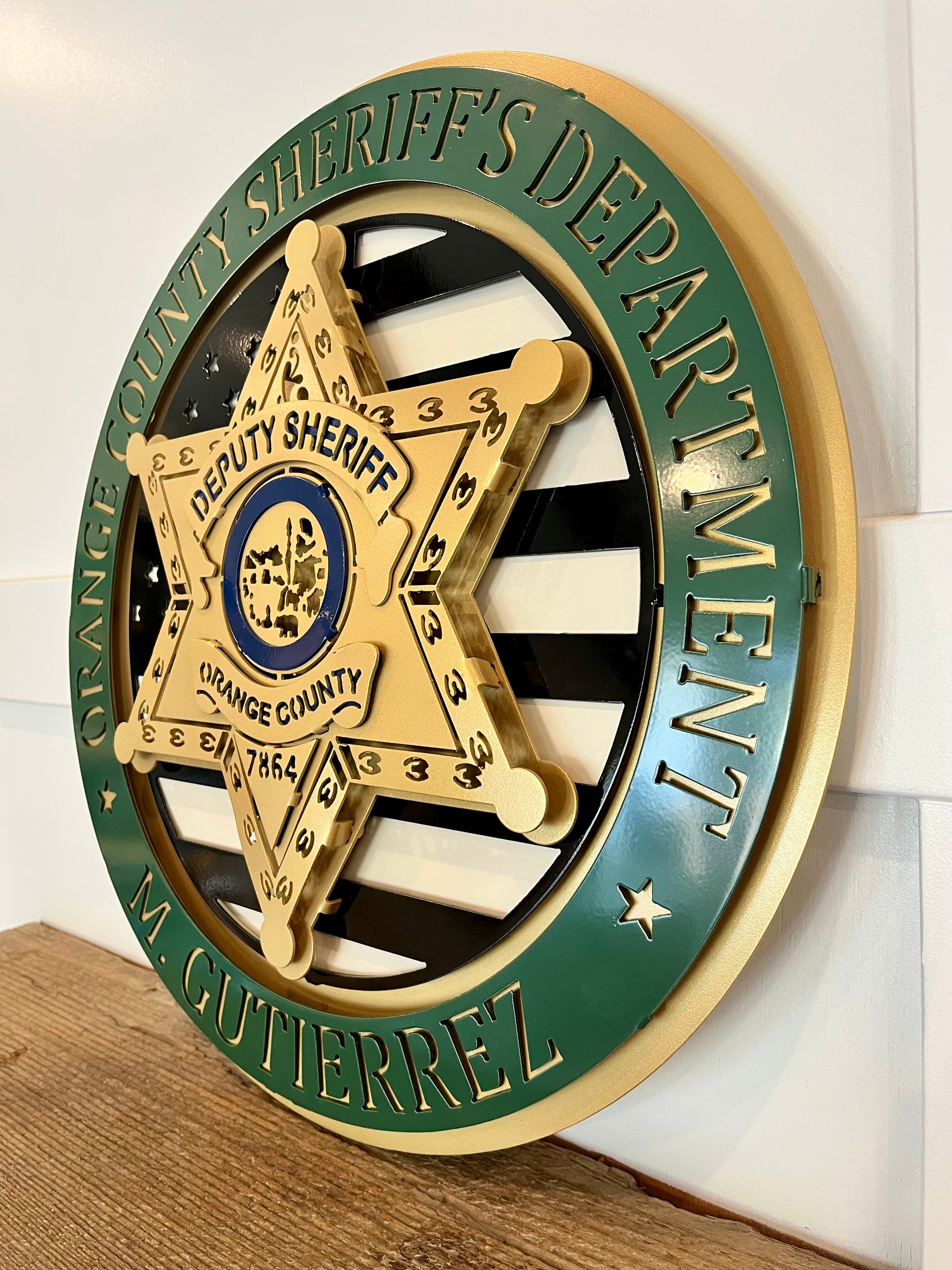 Show your pride and support for your agency! This sign is sure to stun all those who see it in your home or office. Fully customizable with colors, badge, ID number and text.